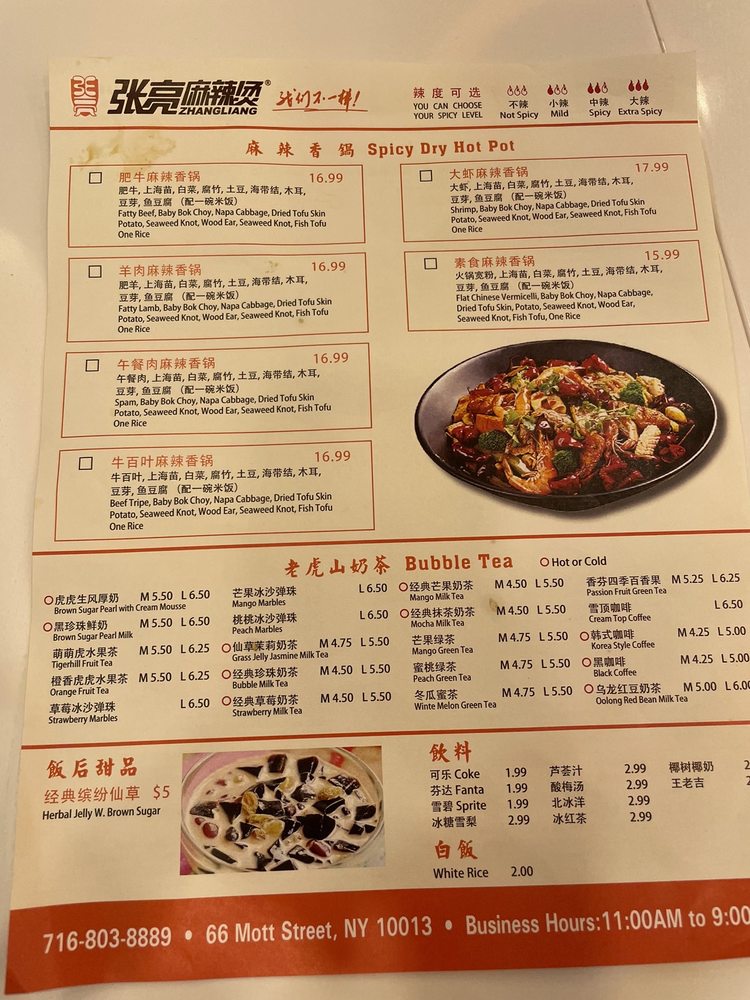 At Zhang Liang Hot Pot in New York, customers can indulge in a unique dining experience with a wide selection of hot pot options, including Mala Tang and Spicy Stir Fry Hot Pot. The customizable DIY concept allows diners to choose their preferred ingredients and spice levels, enhancing the dining experience. Customers rave about the fresh meats, vegetables, and seafood, as well as the interactive sauce bar. While the prices are reasonable and the portions generous, customers appreciate the attentive service and welcoming atmosphere. With options for delivery and takeout, this classy restaurant caters to various preferences, making it a must-try for hot pot enthusiasts. Don't miss out on the flavorful Mala Tang dishes, especially if you enjoy a spicy kick in your meal. Experience the best of Chinese cuisine at Zhang Liang Hot Pot.